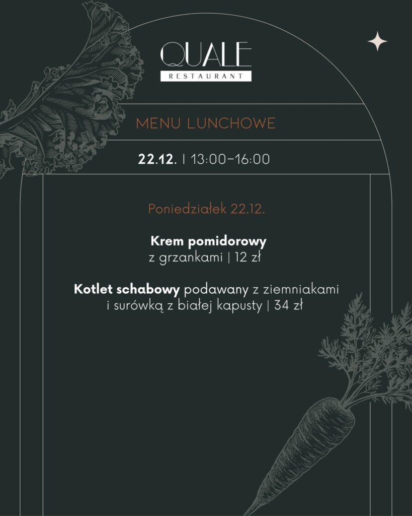 Lunch w Quale to idealna propozycja zarówno na spotkania biznesowe, jak i chwilę wytchnienia w wyjątkowej atmosferze i atrakcyjnej cenie.🍽