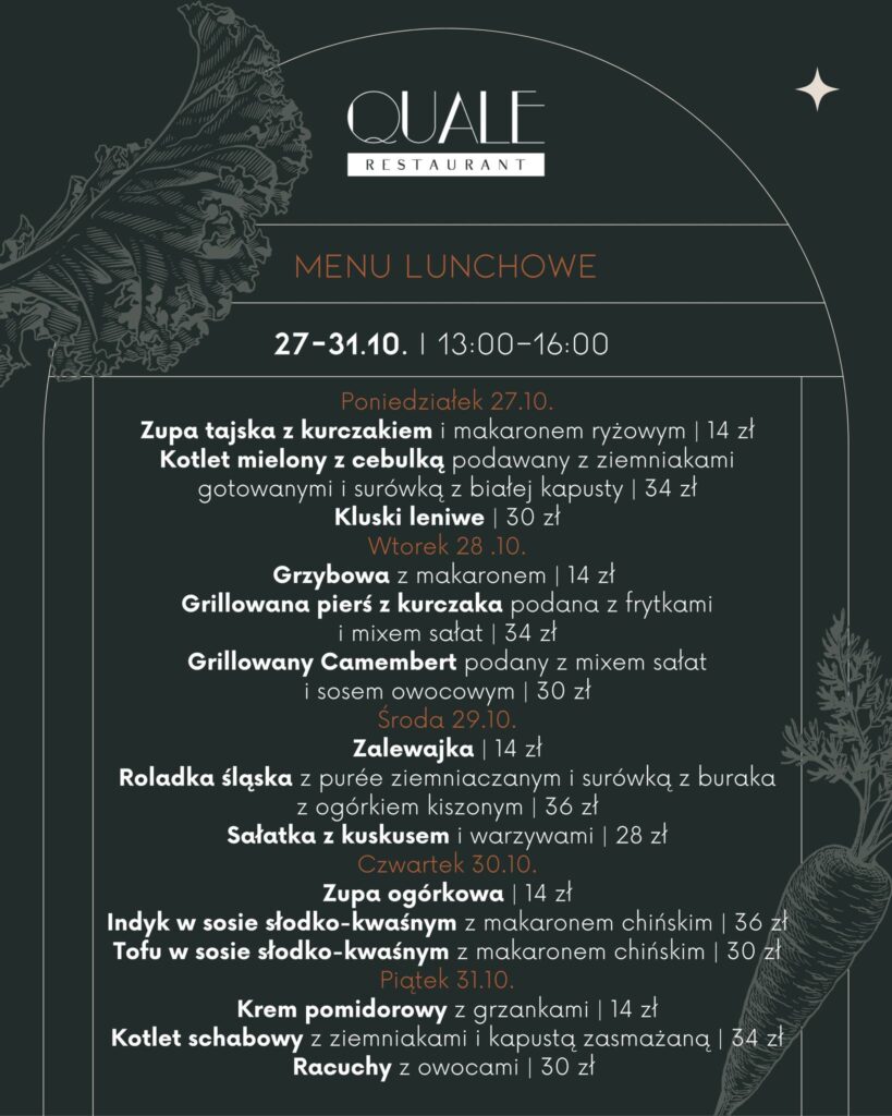Lunch w Quale to idealna propozycja zarówno na spotkania biznesowe, jak i chwilę wytchnienia w wyjątkowej atmosferze i atrakcyjnej cenie.🍽